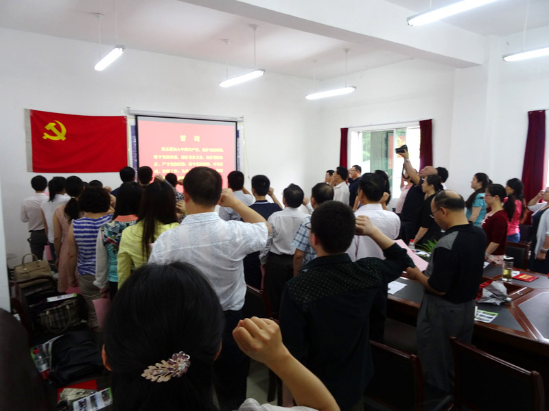 随后,举行了新党员入党宣誓、老党员重温入党誓词仪式,面向党旗,9名新党员与40余名老党员庄严宣誓。会上,为获得“立说立行转变作风 真诚真心服务师生”主题征文的19个单位和个人颁发了证书和奖励。获奖征文作者代表和新党员代表分别发言。